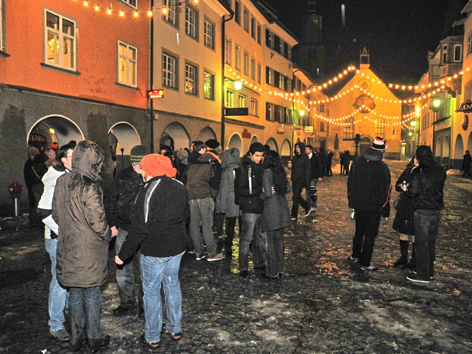 Die Kulisse für die Silvesterparty in der mittelalterlichen Marktgasse mit der Johanniterkirche im Hintergrund