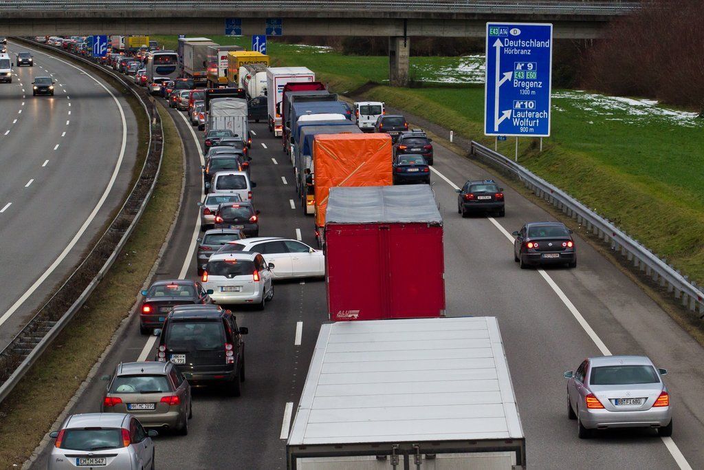 Erster Tag der Rettungsgasse auf der A14 vor dem Pfändertunnel in Bregenz