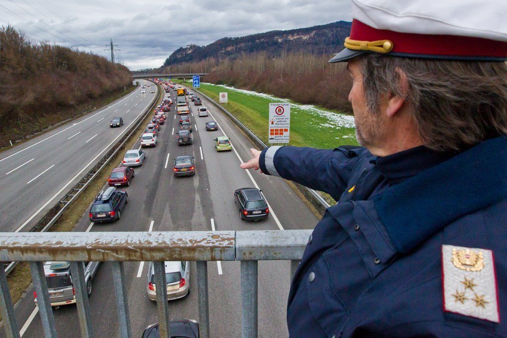 Erster Tag der Rettungsgasse auf der A14 vor dem Pfändertunnel in Bregenz