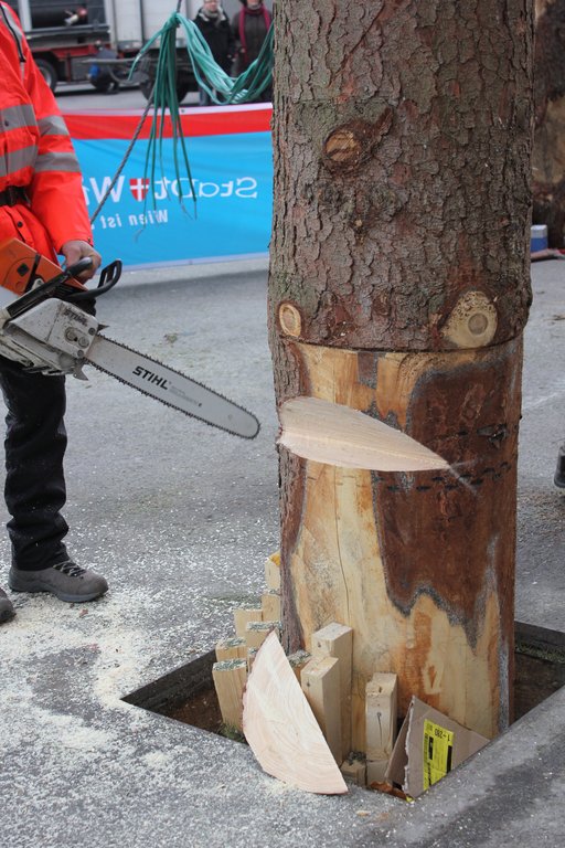 Christbaum am Wiener Rathausplatz gefällt (05.01.2012)