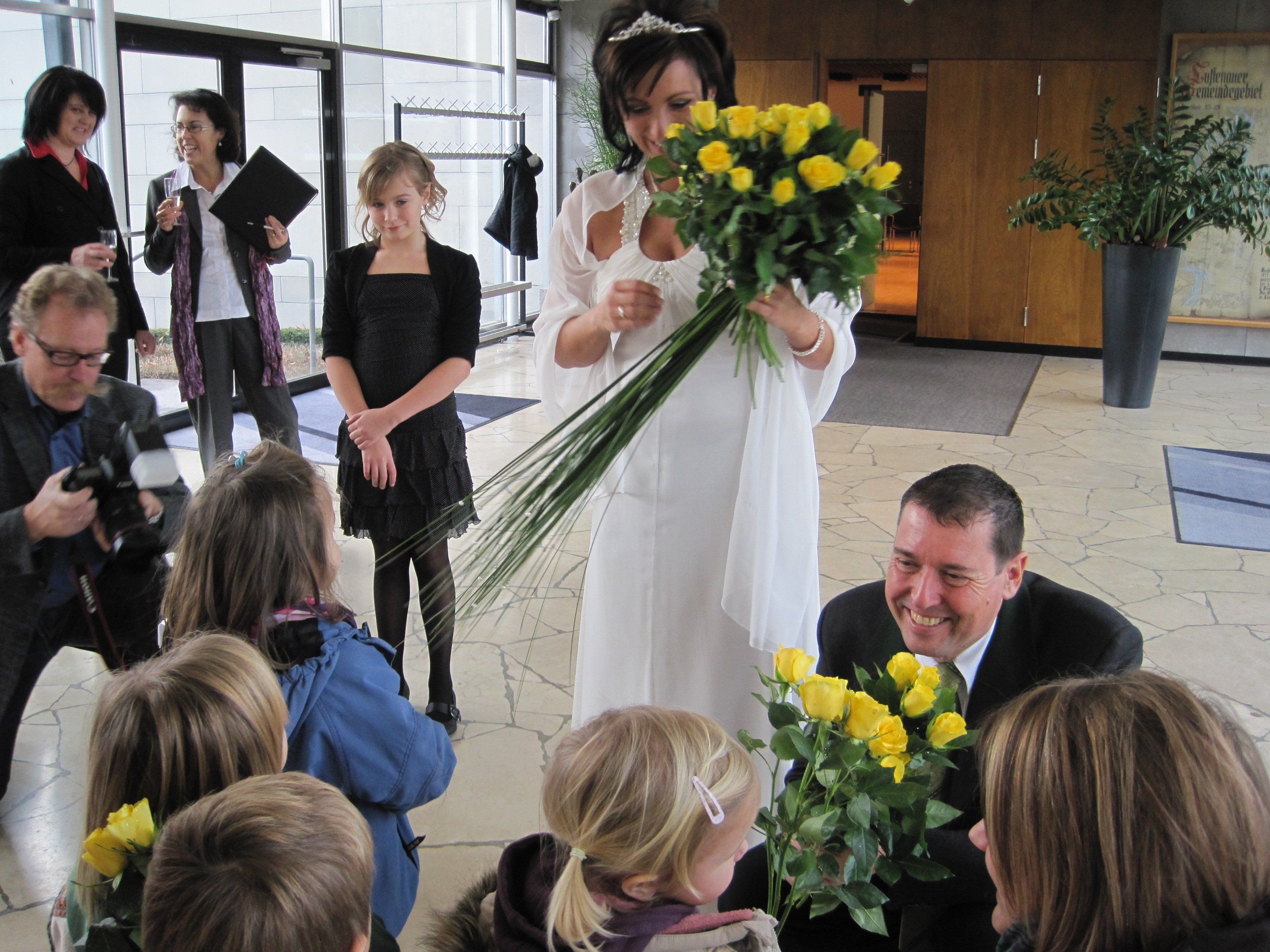 Das Brautpaar freut sich über die kleinen Gratulanten