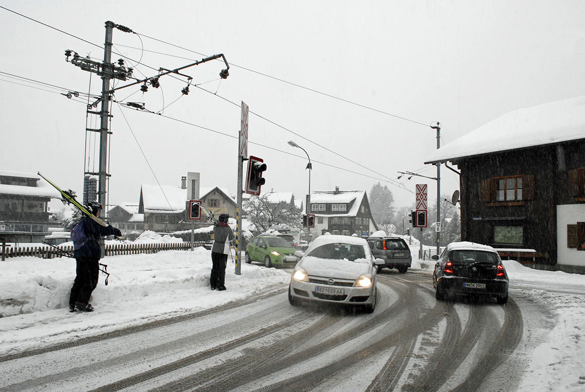 Am Bahnübergang in Schruns - © Gerhard Scopoli, 7. Jänner 2012