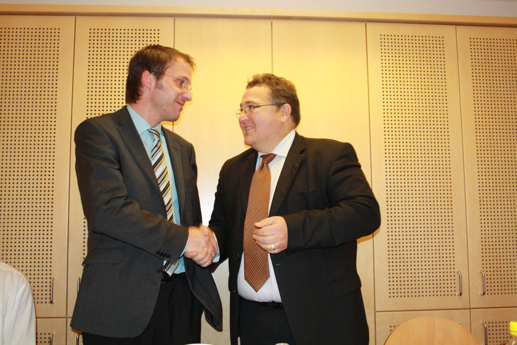 Martin Fischer gratuliert Oliver Huber zur Wahl.