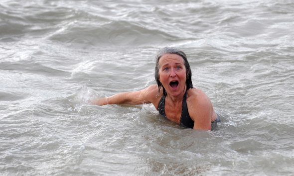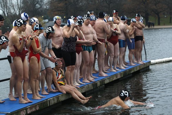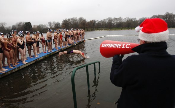 Wagemutige Schwimmer am Weihnachtstag