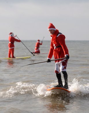 Wagemutige Schwimmer am Weihnachtstag