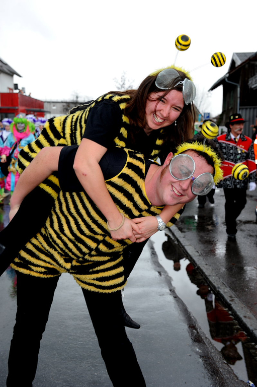 Zwei Bienen im winterlichen Höhenflug.