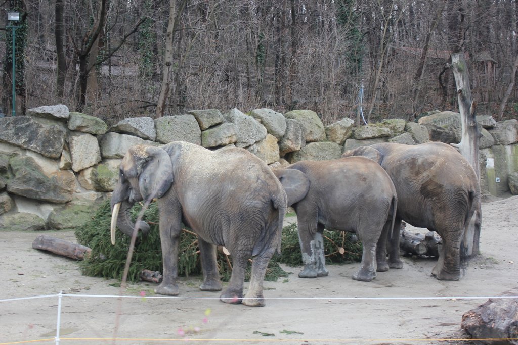 Ein Christbaum als Futter für die Elefanten von Schönbrunn
