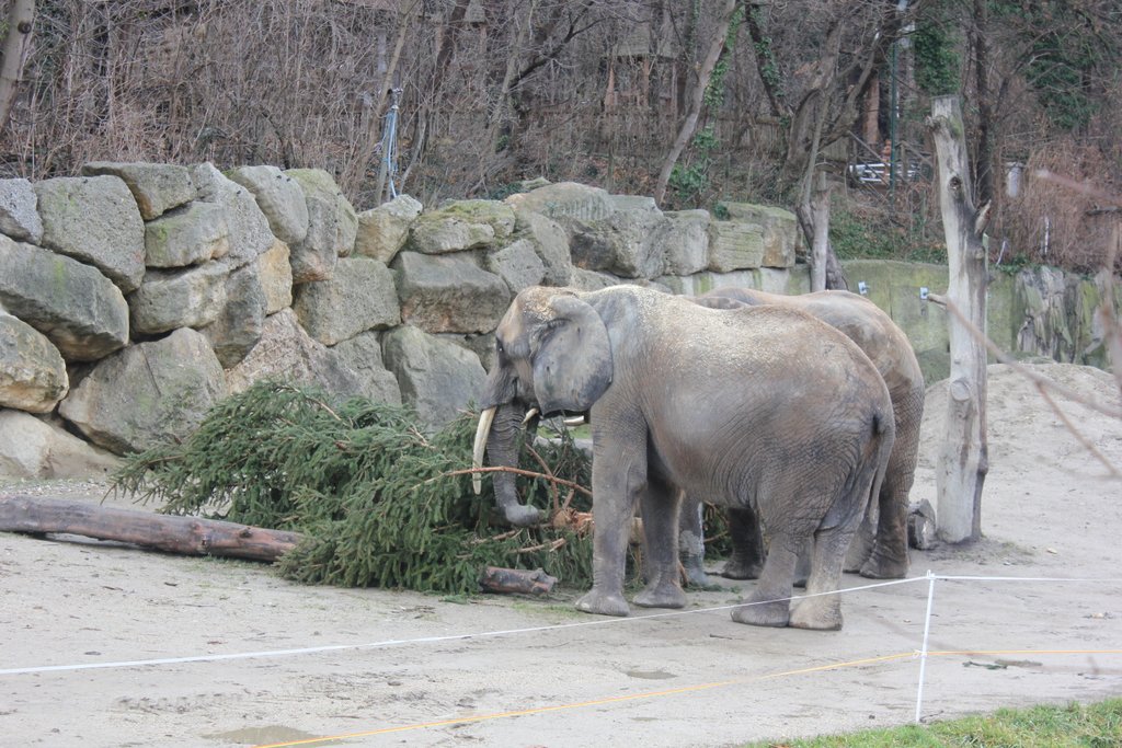 Ein Christbaum als Futter für die Elefanten von Schönbrunn