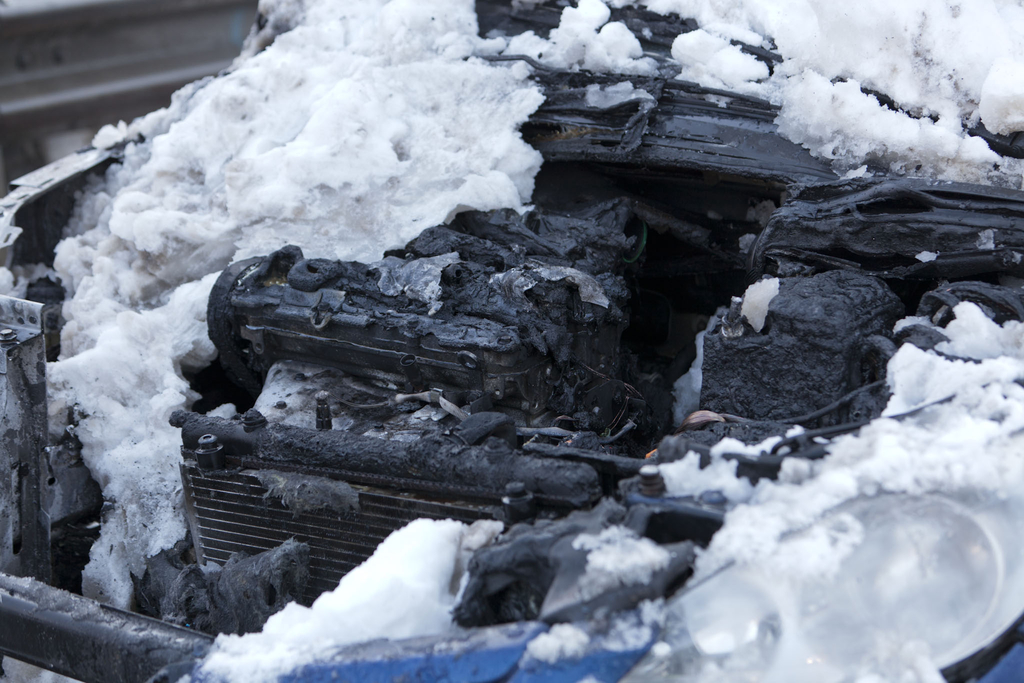 Arlbergstraße: Fahrzeugbrand mit Schnee gelöscht
