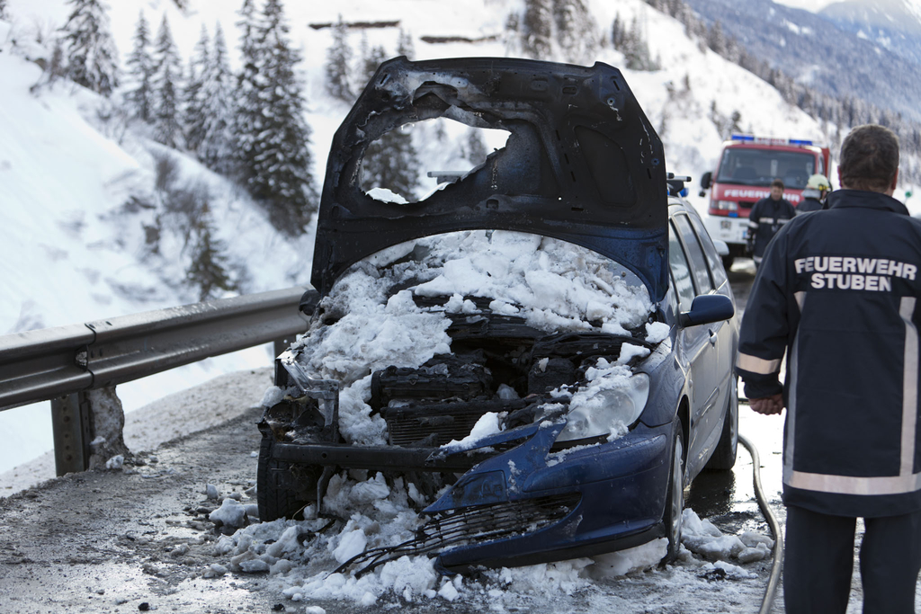 Arlbergstraße: Fahrzeugbrand mit Schnee gelöscht
