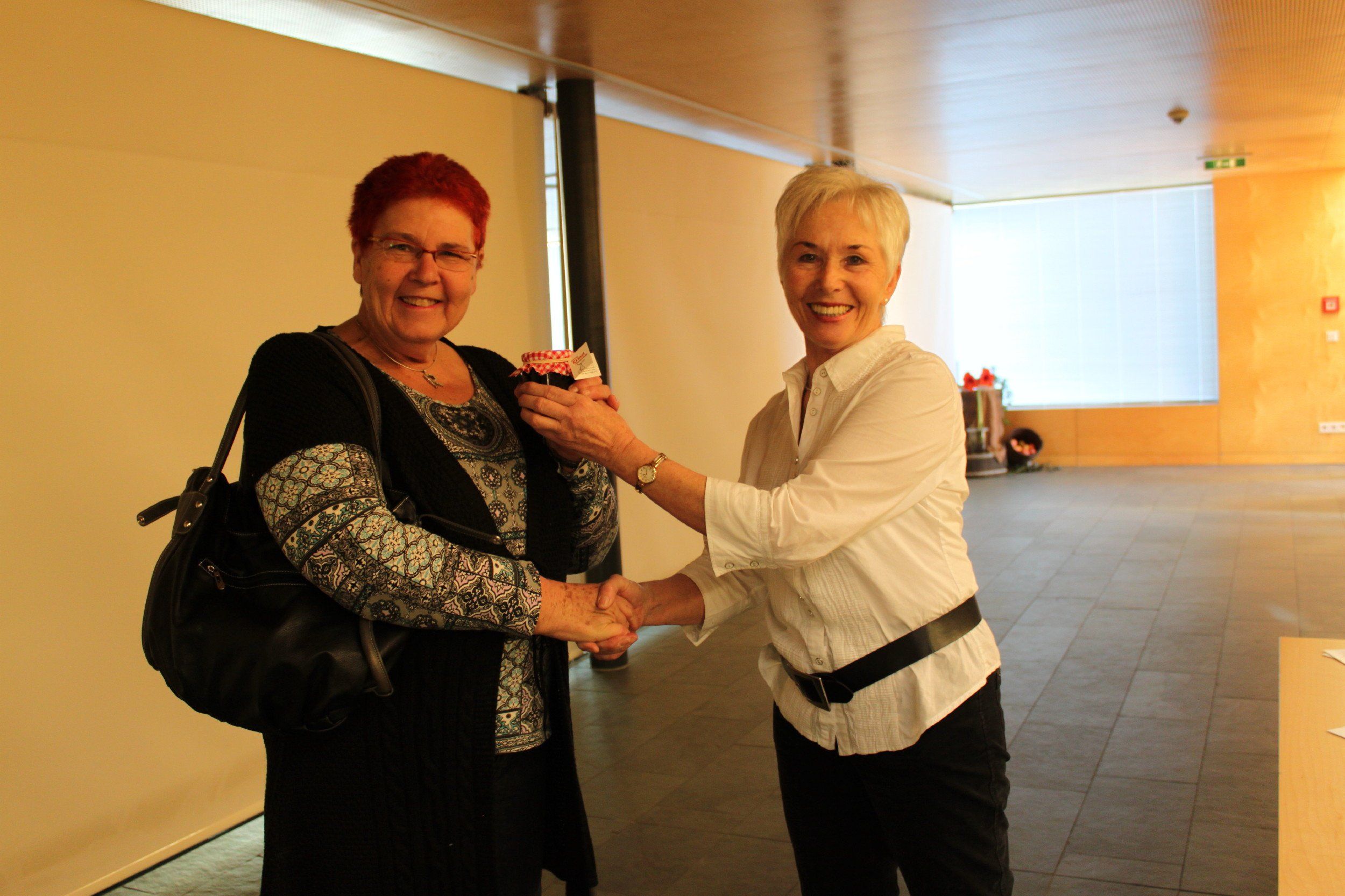 Begrüßung von Erika Nägele mit Kriasi-Marmelade vom OGV Fraxern