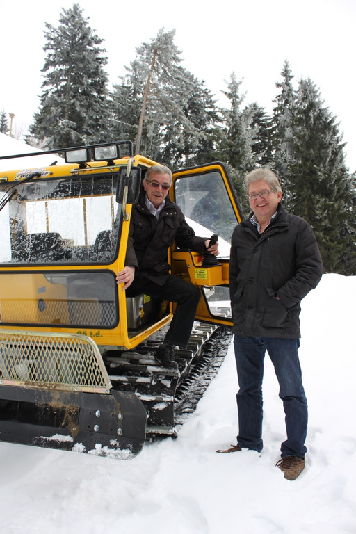 Georg Stadler und Hermann Gmeiner mit dem Pistengerät „Snow Rabbit III“ unterwegs.