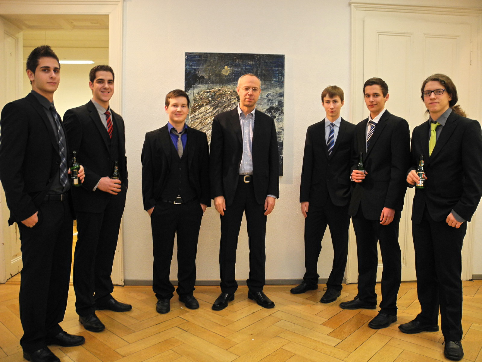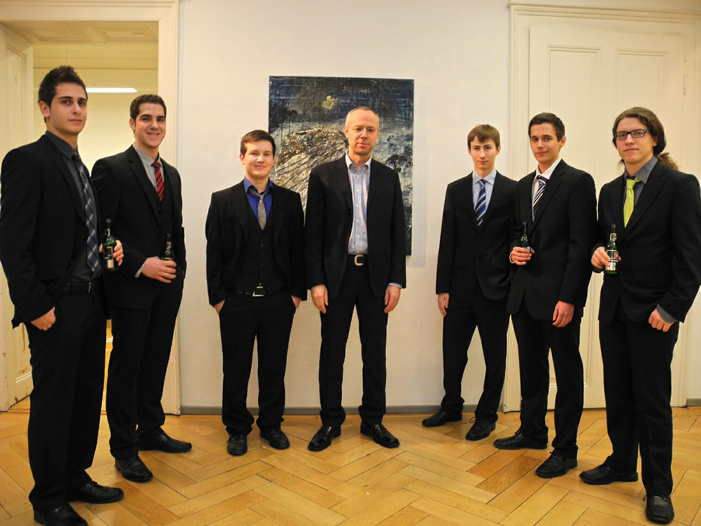 Prof. Geismeyr (Bildmitte) mit seinen Schülern der 7b Klasse vom Gymnasium Rebberggasse