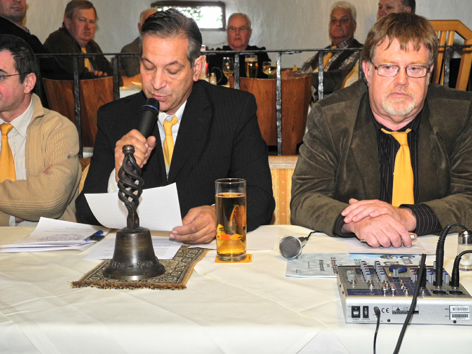(l.) Zunftmeister Bertram Zerlauth begrüßt die Zunftbrüder und –schwester.