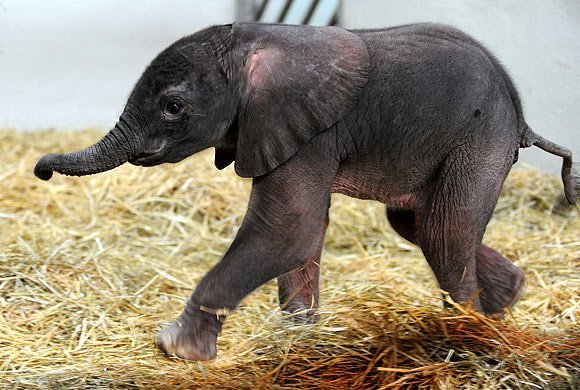 Am 27. 12. kam ein kleines Elefantenmädchen im Serengetipark Hodenhagen zur Welt. © dpa