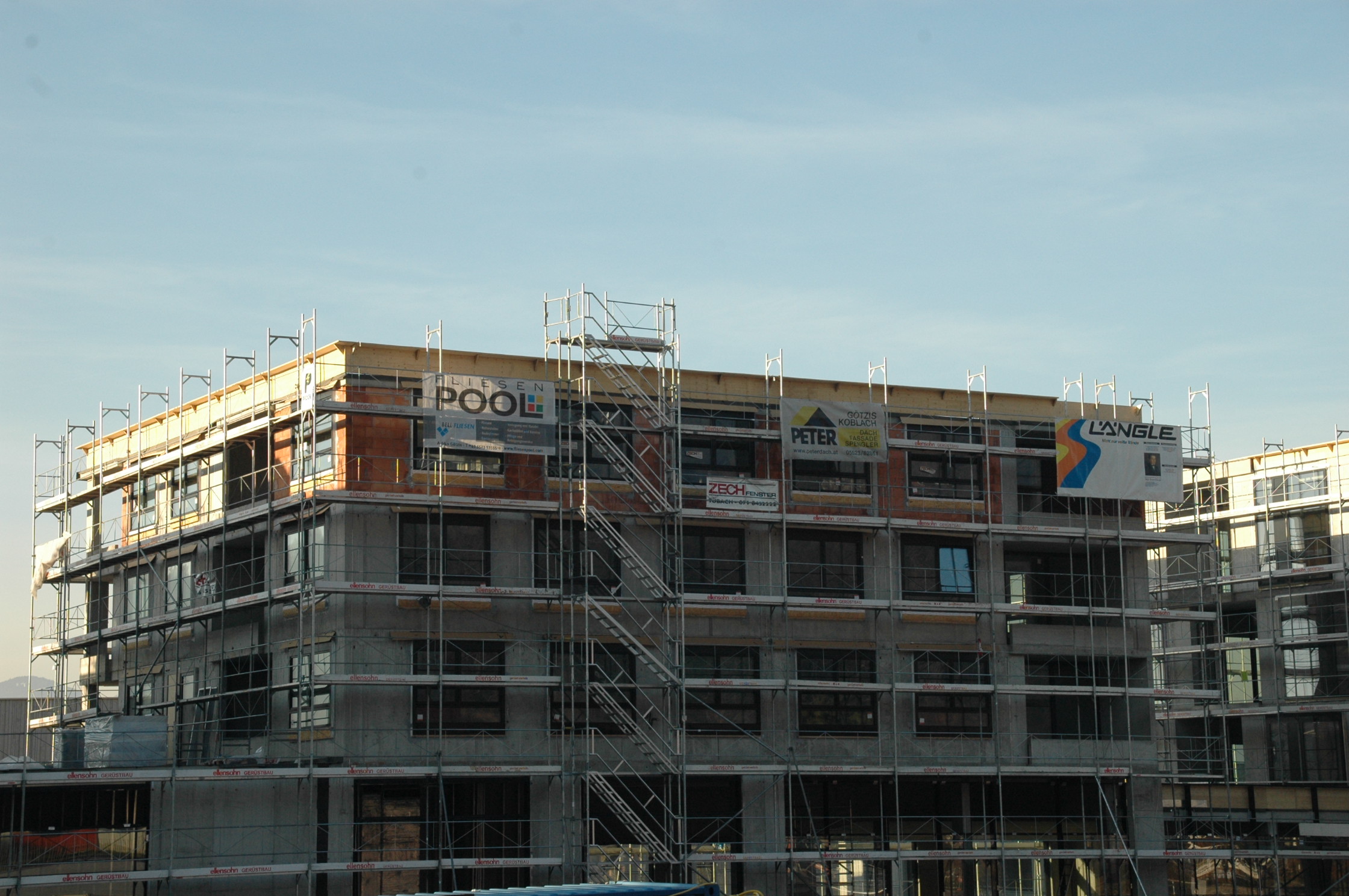 Am Garnmarkt werden schon bald die Verputzer antreten - die Fenstern sind gesetzt - die Gerüste aufgebaut