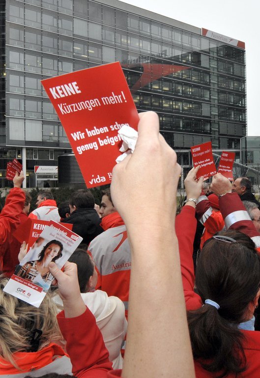 Bilder von der AUA-Protestkundgebung am Flughafen Schwechat