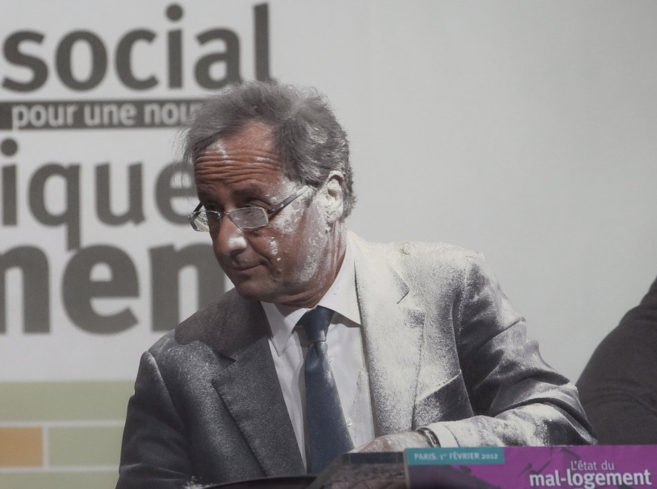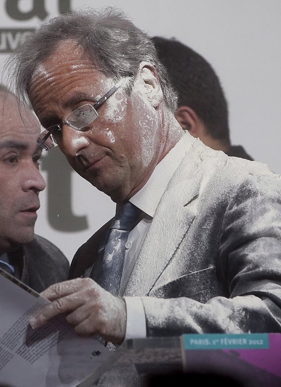 François Hollande mit Mehl beworfen