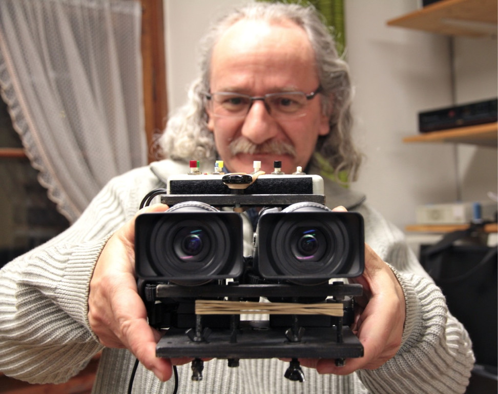 Elmar Grass mit dem von Helmut Müller gebautem 3D System