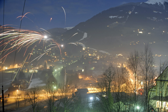 Fröhlich und ausgelasssen wurde in Tschagguns und Schruns der Jahreswechsel gefeiert. Aussichtspunkt: "Mottabühel" hinter der Kirche von Tschagguns. (Foto: Gerhard Scopoli)