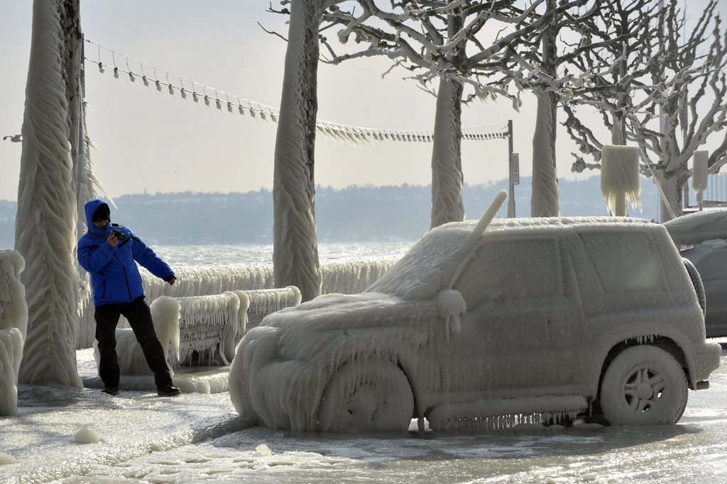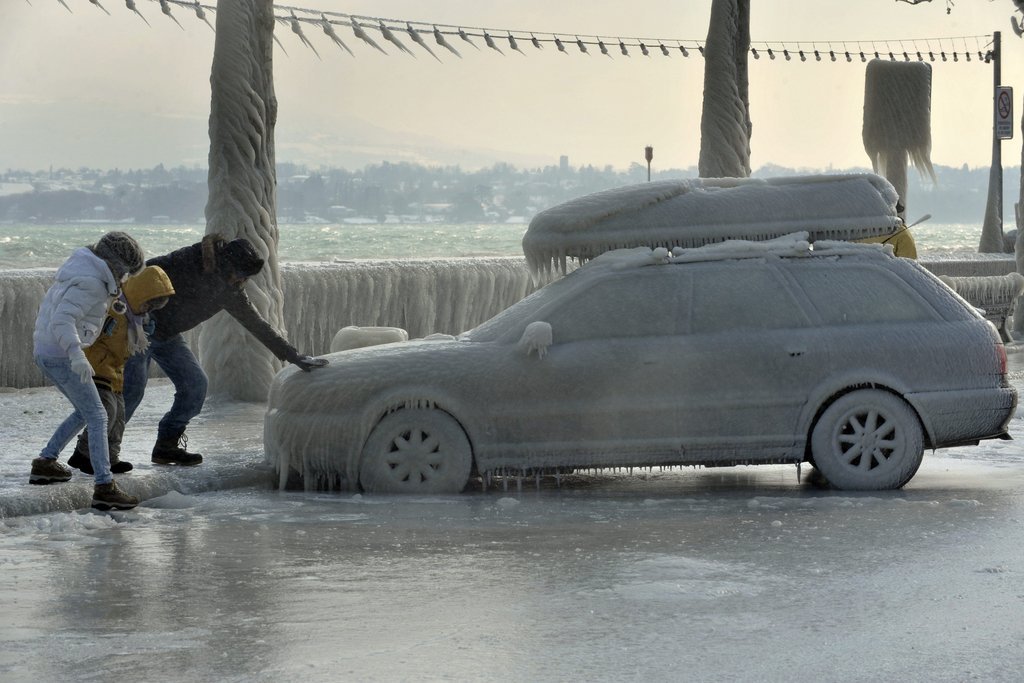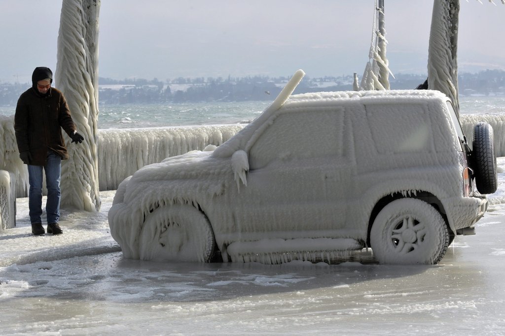 Eiseskälte am Genfer See: Autos eingefroren