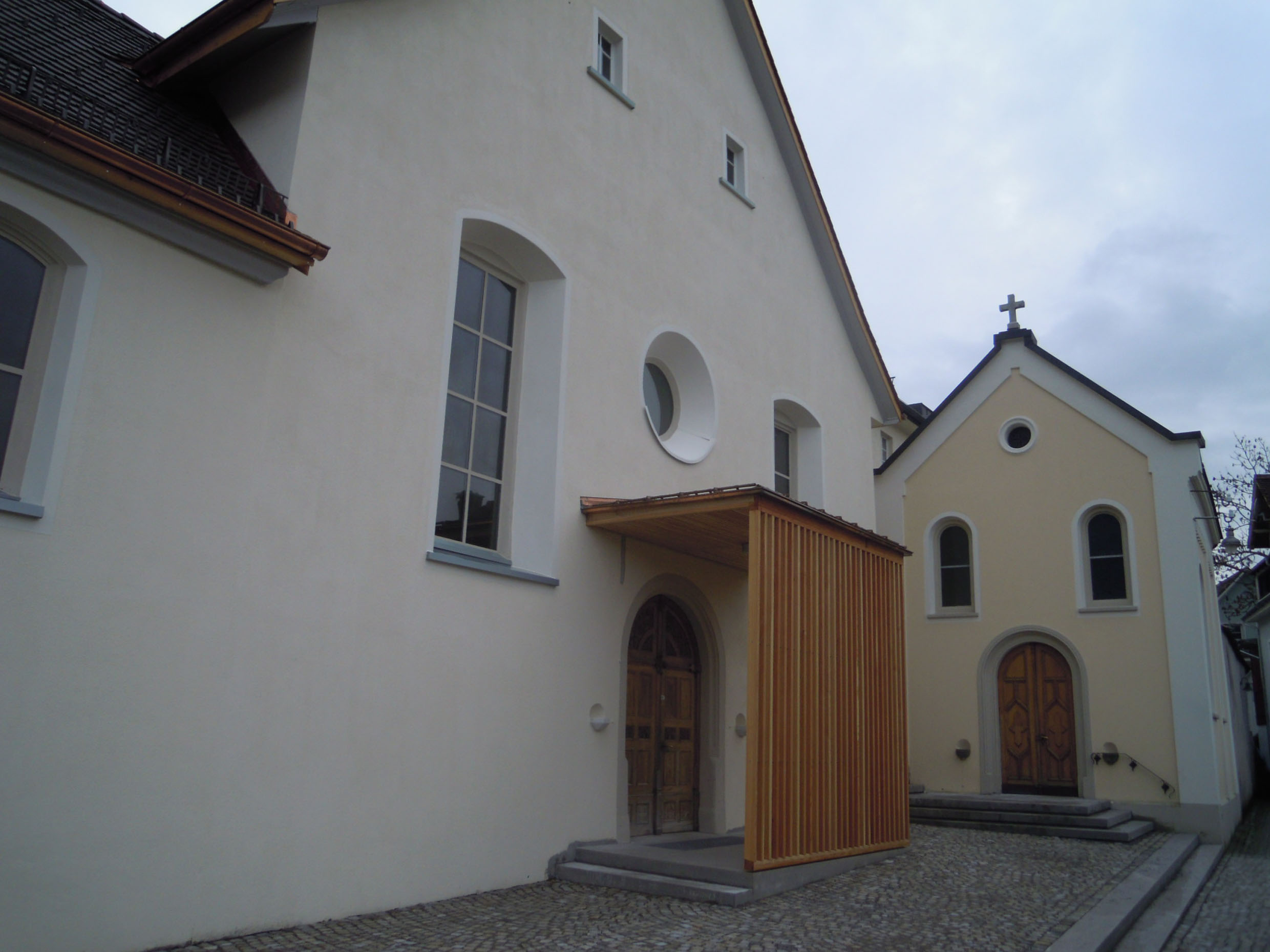 Der Kirchplatz mit der Lourdes-Kapelle und dem neuen Kirchenentree.