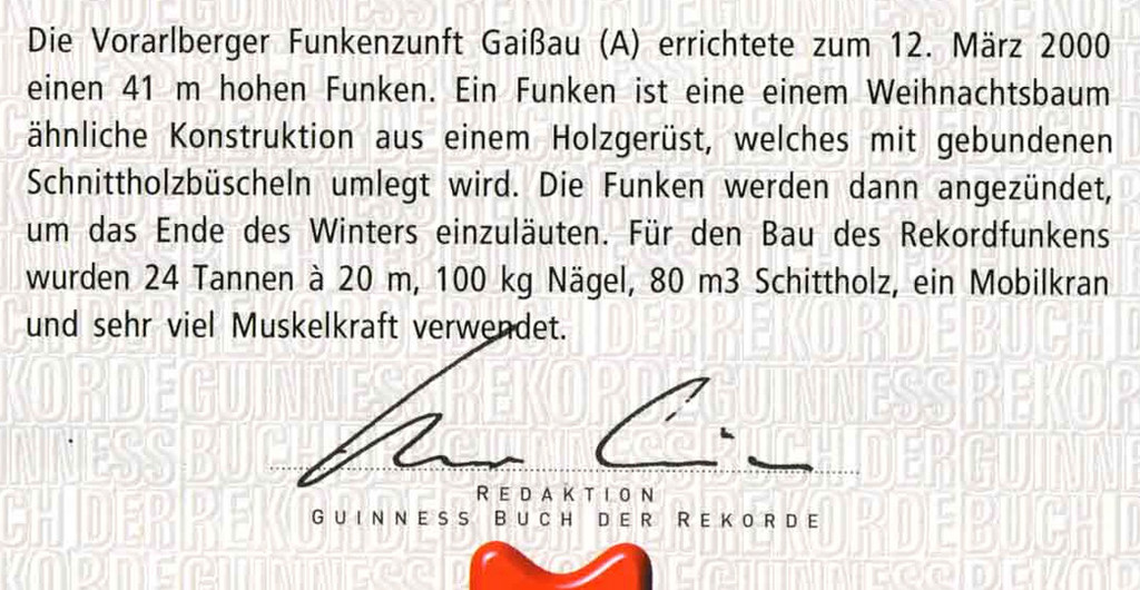 Bestätigung durch das Guinnessbuch