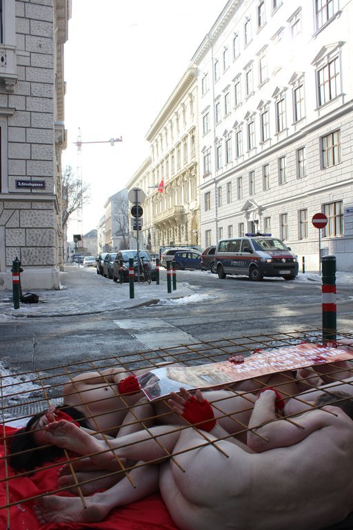 Nacktprotest vor der chinesischen Botschaft