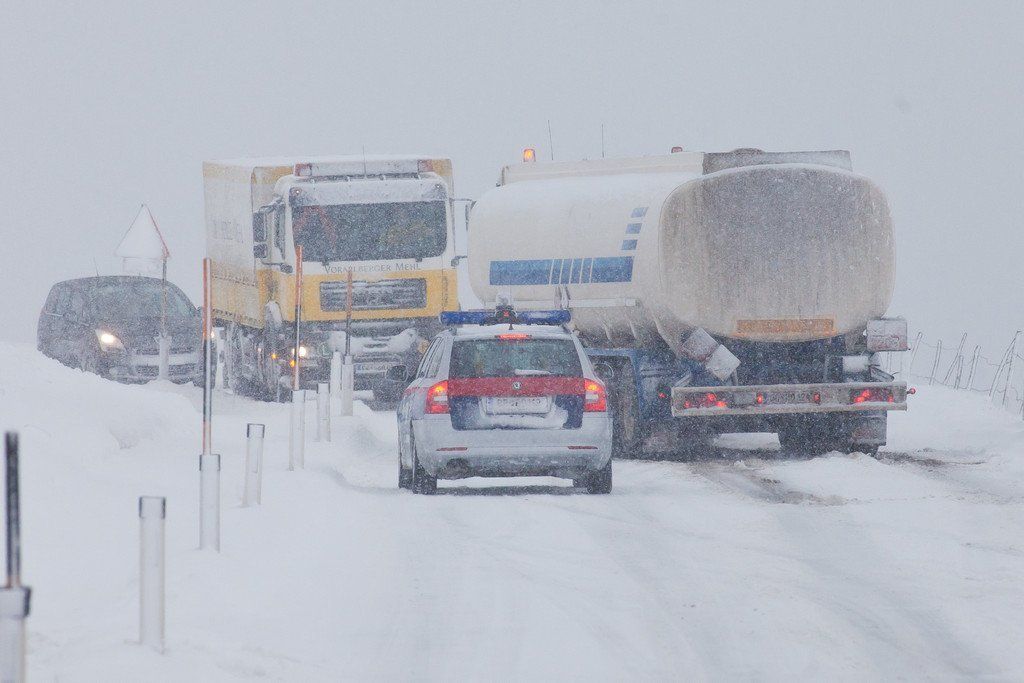 Lkw in Lingenau hängengeblieben