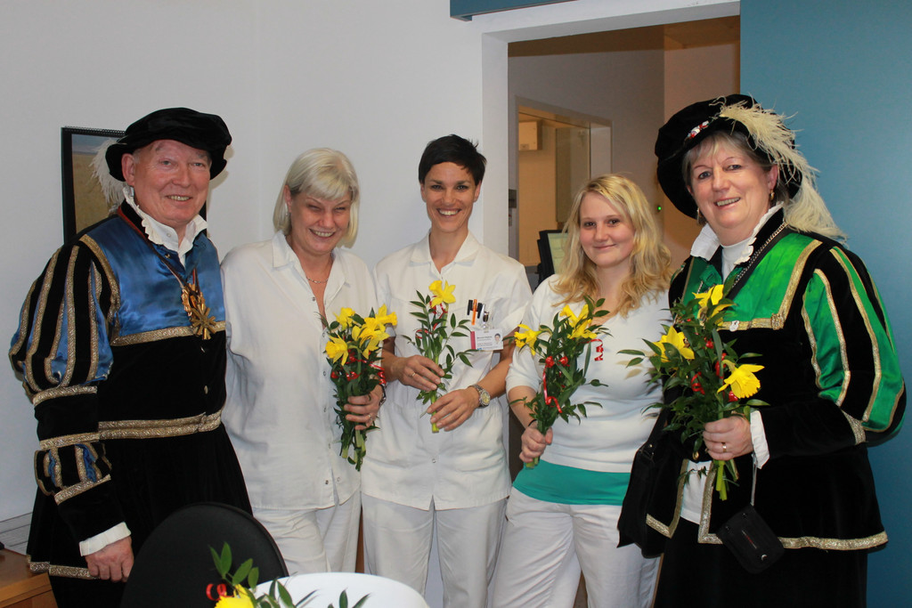 Ursula Reiner, Leiterin der Abteilung Unfallröntgen, mit ihren Mitarbeiterinnen Manuela Allgäuer und Martina Feierle sowie den Spältabürgern Christa Frick und Peter Efferl.