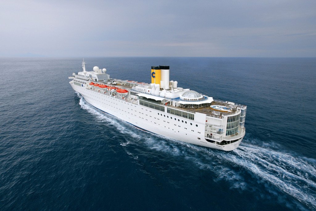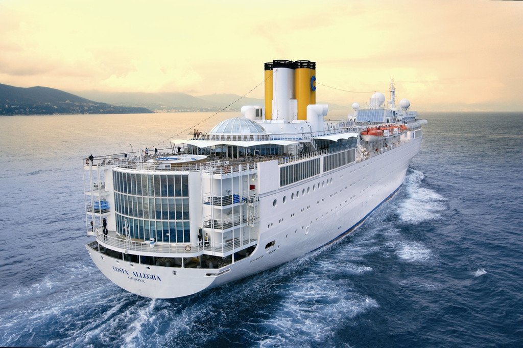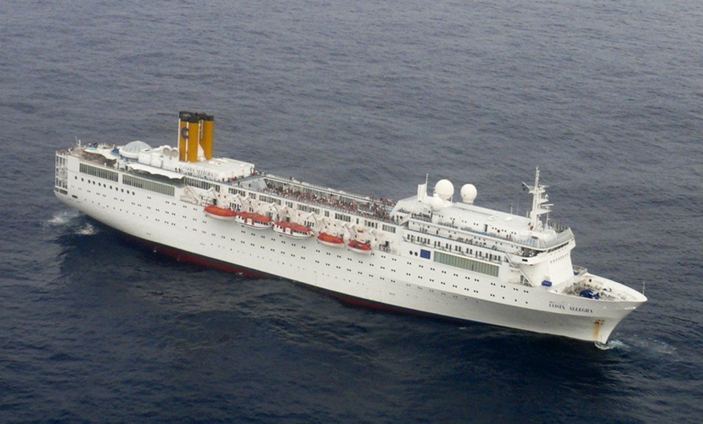 Fischtrawler schleppt Kreuzfahrtschiff Costa Allegra zu Insel