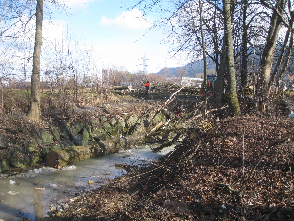 Rodungen im Hochwasserabflussbereich des Ruggbaches