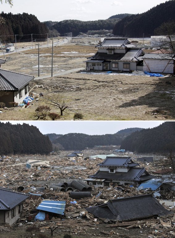 Der Strom ist wieder da in Minamisanriku. Ein Hausdach landete nach dem Beben in der Gegend, der Rest des Hauses war anderweitig verteilt.