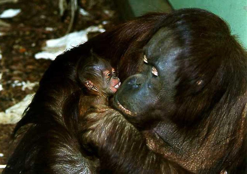 März 1998: Kleine Sensation: Erstmals nach 22 Jahren wurde im Wiener Tiergarten wieder ein Orang Utan Baby geboren. Tiergarten Schönbrunn/Jutta Kirchner
