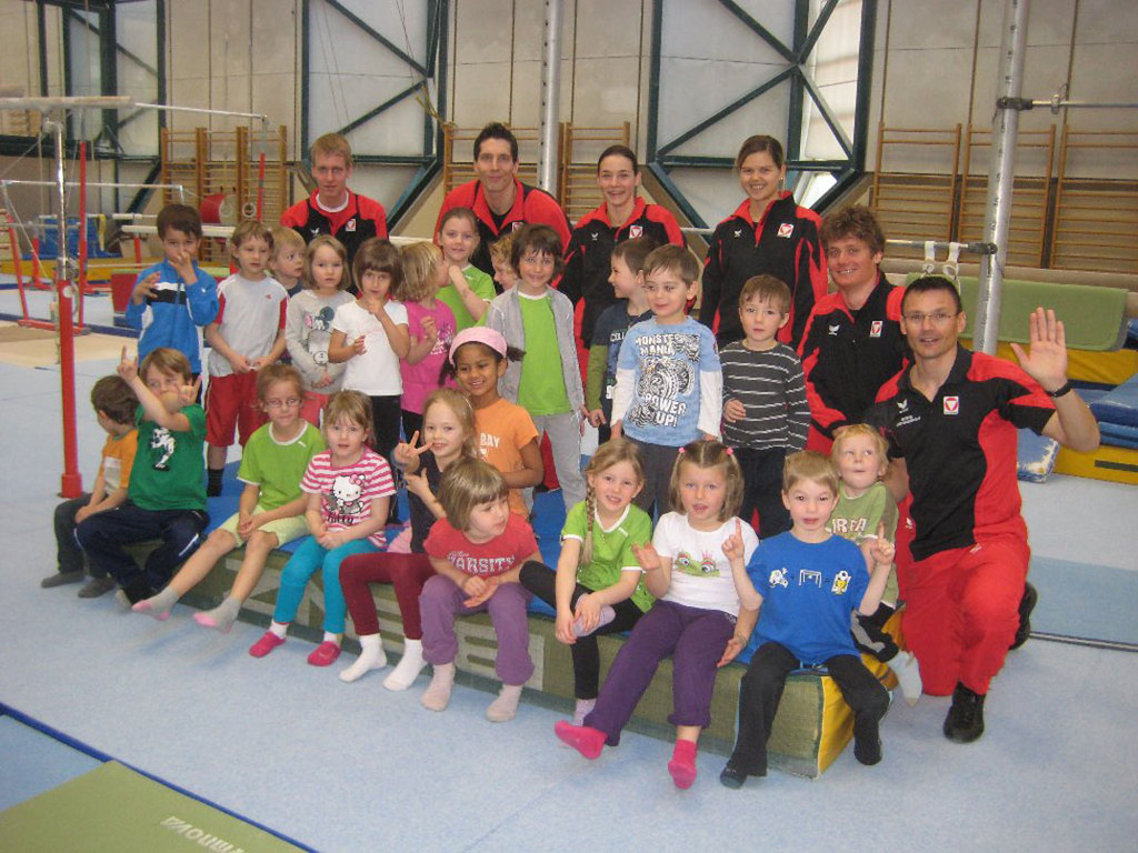 Der Kindergarten zu Besuch in der Landessportschule Dornbirn.