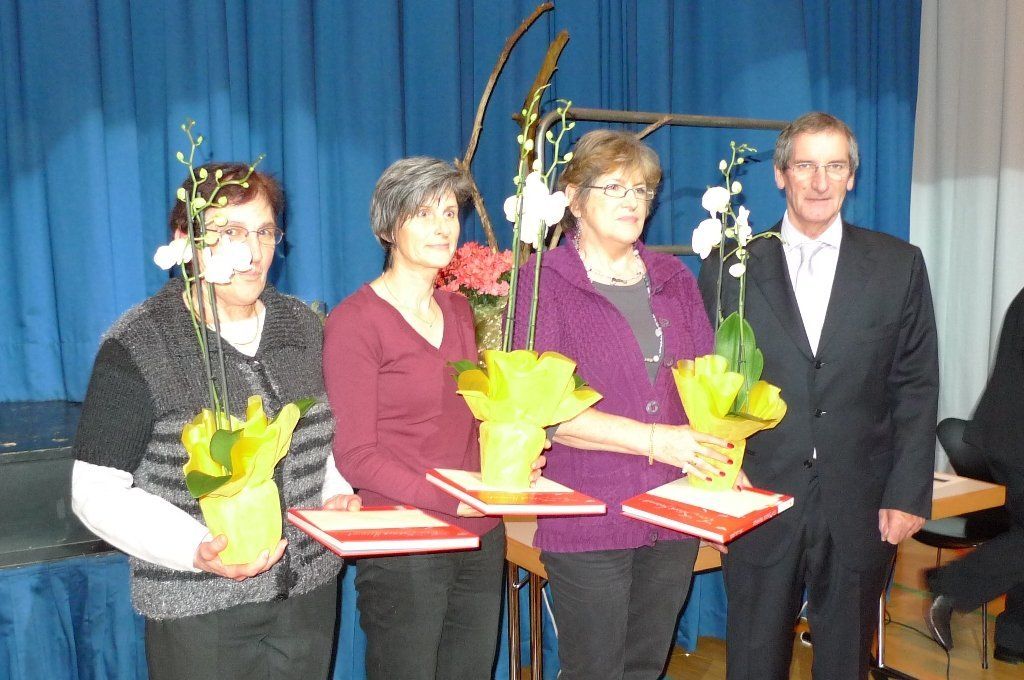 Ehrung Seniorenteam: Renate Bachmann, Ilga Marte, Ilse Nachbaur m. BM Mathis.