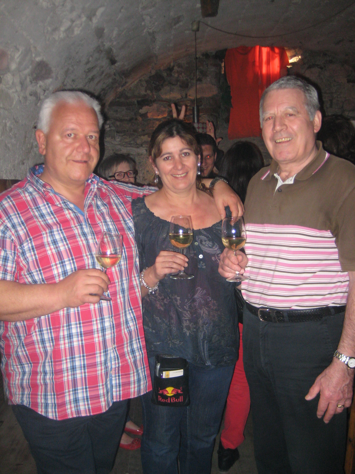 Gasthof Sonne: Hannes und Kurt (Weinhandlung Amann) mit Sonnen-Wirtin Andrea.