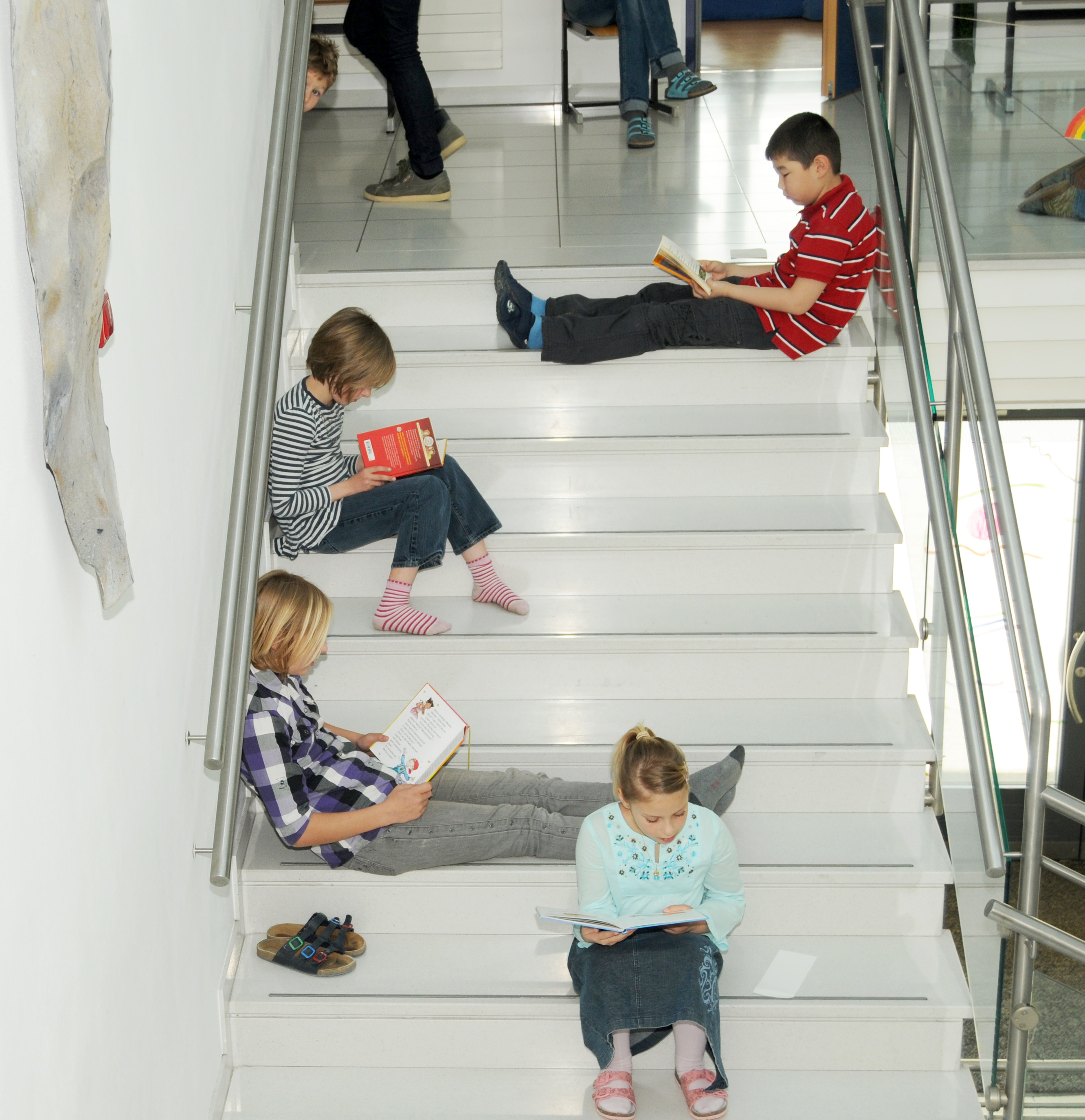 Leseratten im Treppenhaus