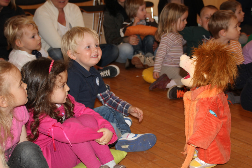 Spielkiste-Kinder beim Puppenspiel "Karlinchen" in der Bibliothek Schlins
