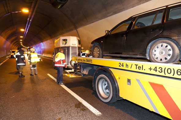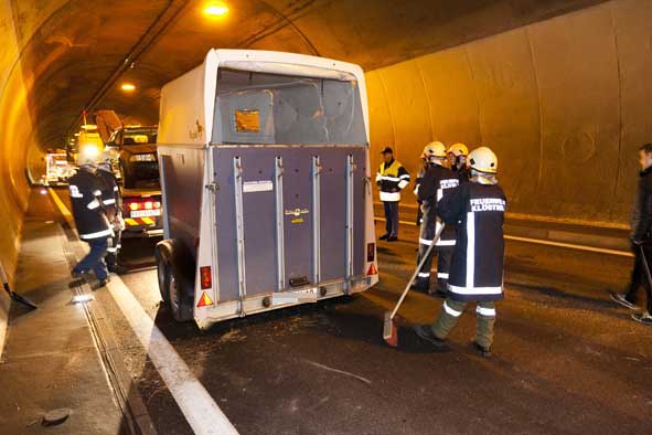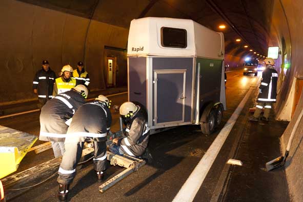 Pferdeanhänger im Langener Tunnel umgestürzt