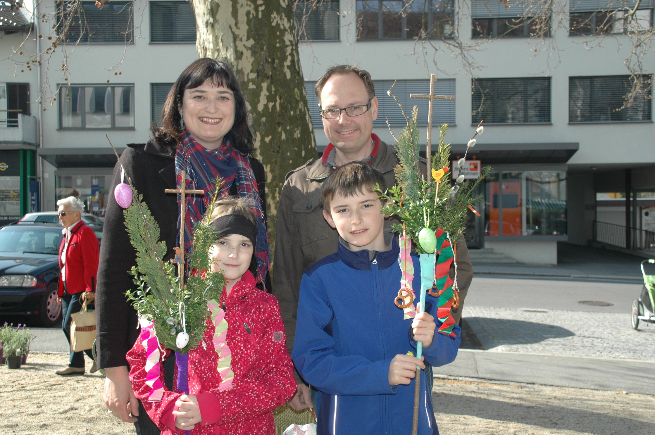 Familie Stohs:Emily & Tim waren mit Mama & Papa beim Palmbuschenbinden in Götzis mit dabei