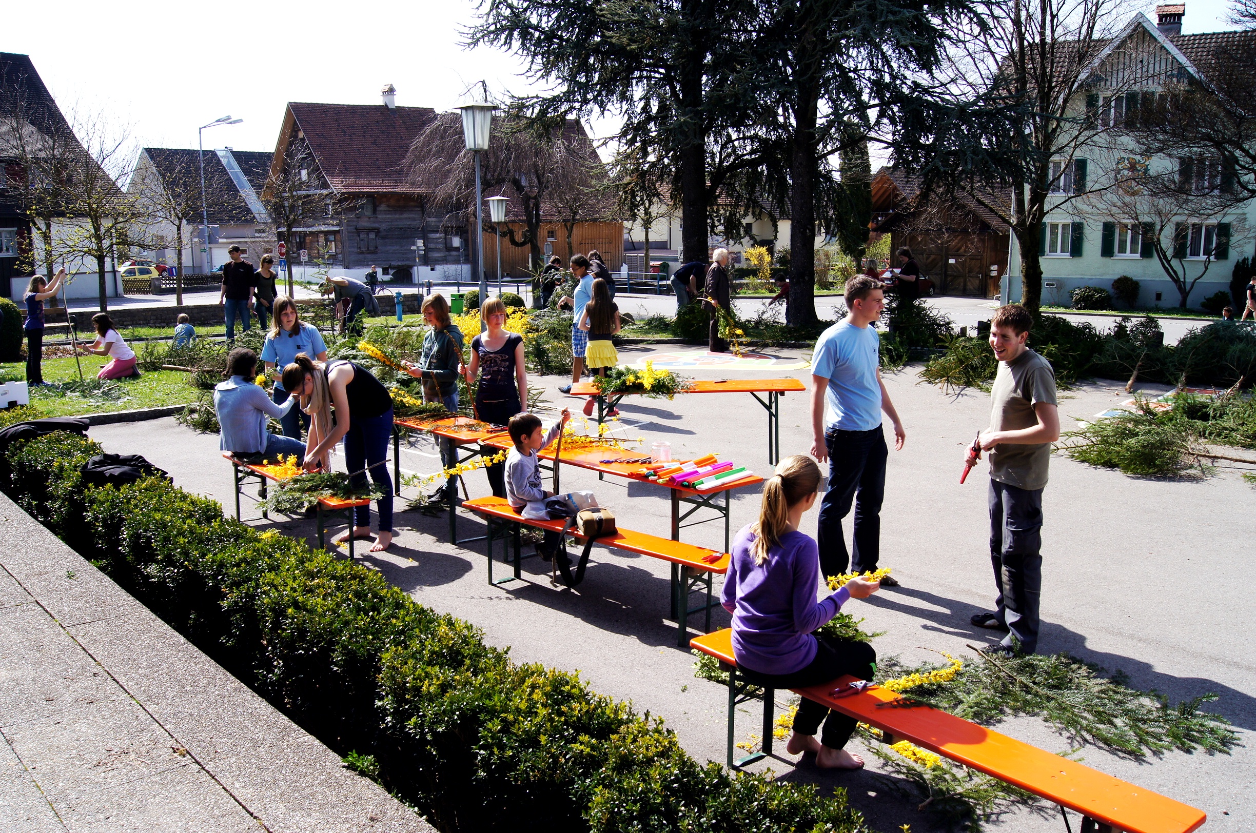 Familien trafen sich zum Palmbinden