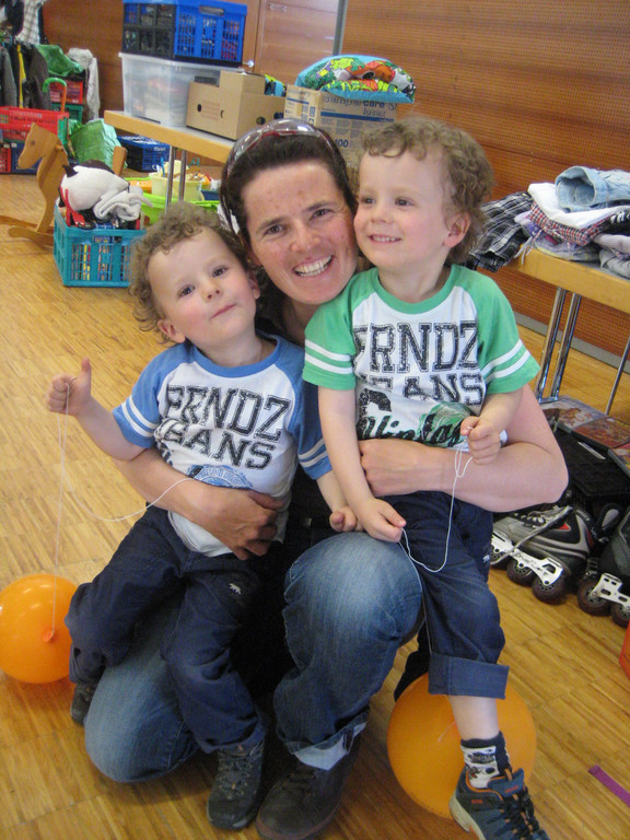 Mama Elisabeth mit ihren Zwillingen Felix und Lorenz.