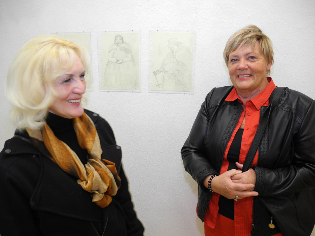 Die Künstlerin Hildegart Unterweger mit Helga Rieder aus Bludenz