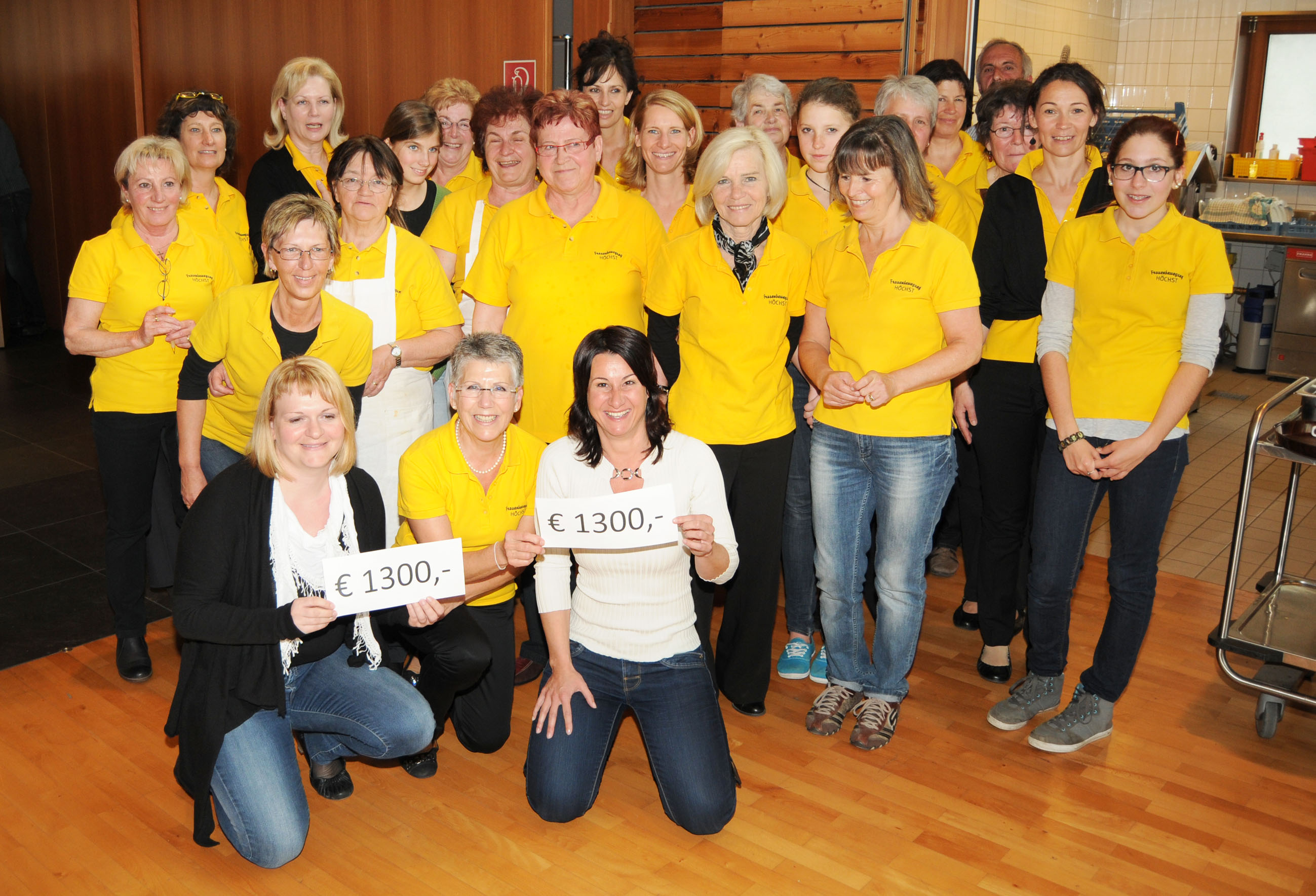 Zur Scheckübergabe versammelt sich die ganze Truppe