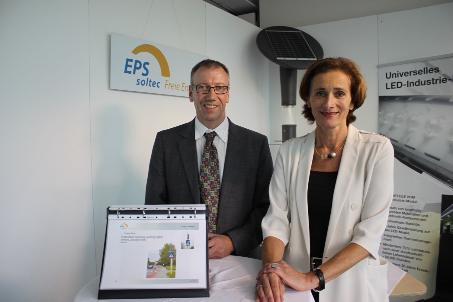 Landtagspräsidentin Bernadette Mennel mit EPS soltec Geschäftsführer Richard Hutter