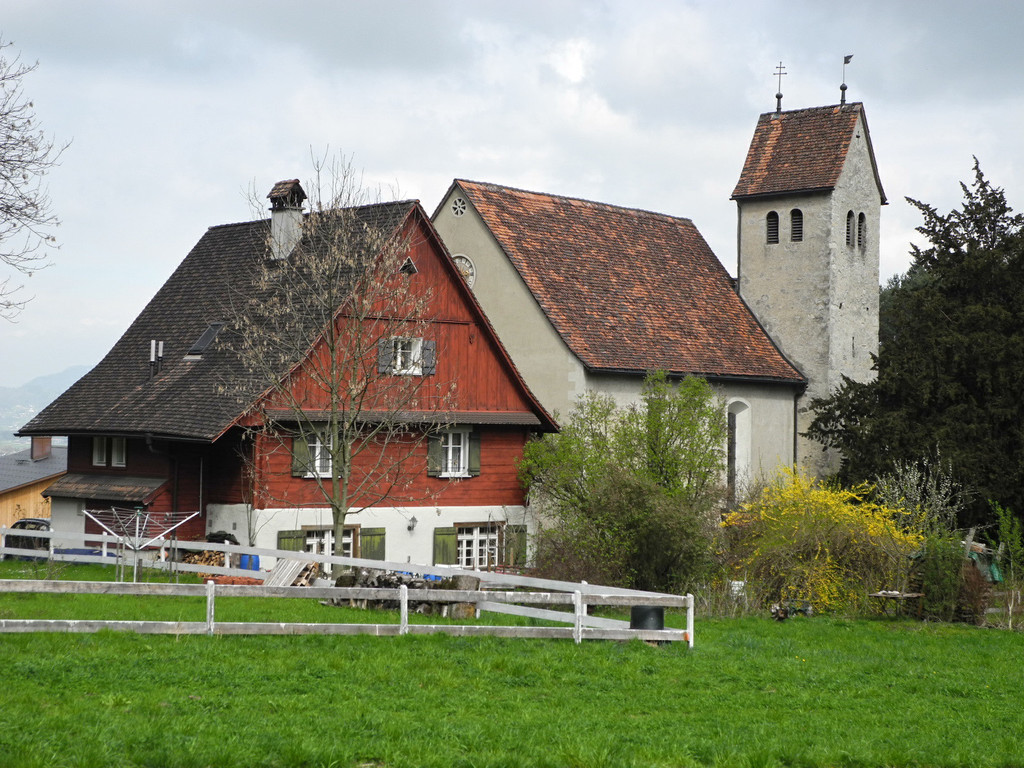Das Messnerhaus und die Wallfahrtskirche auf St. Corneli