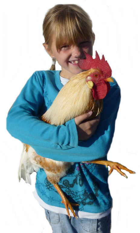 Corina trägt den Schul-Hahn täglich spazieren.