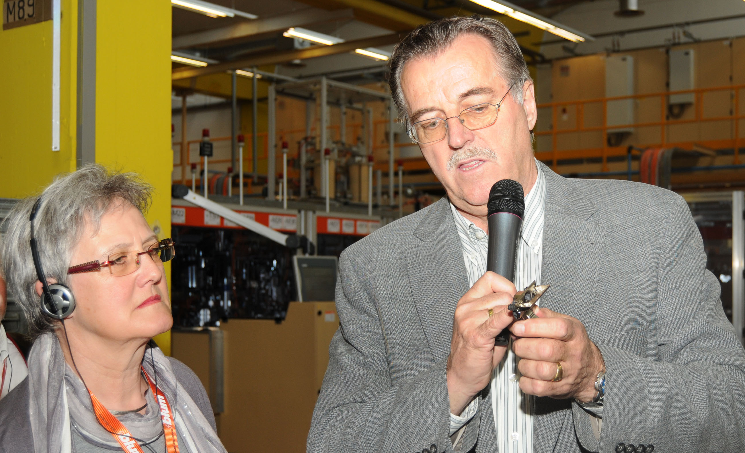 Heimo Lubetz erläutert Bärbel Reiner eine Neuentwicklung von Blum