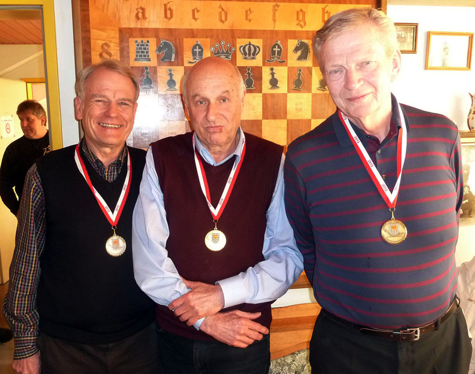 Walter Büchele (Mitte) gewann die Schach-LM vor Günter Dellanoi und Dr. Helmuth Koch (r.).